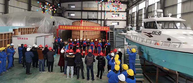 2019年1月8號昊運(yùn)船艇24米游釣艇開工儀式,昊運(yùn)船艇邀請青島船級社領(lǐng)導(dǎo)、用戶及設(shè)備供應(yīng)商共同剪彩。